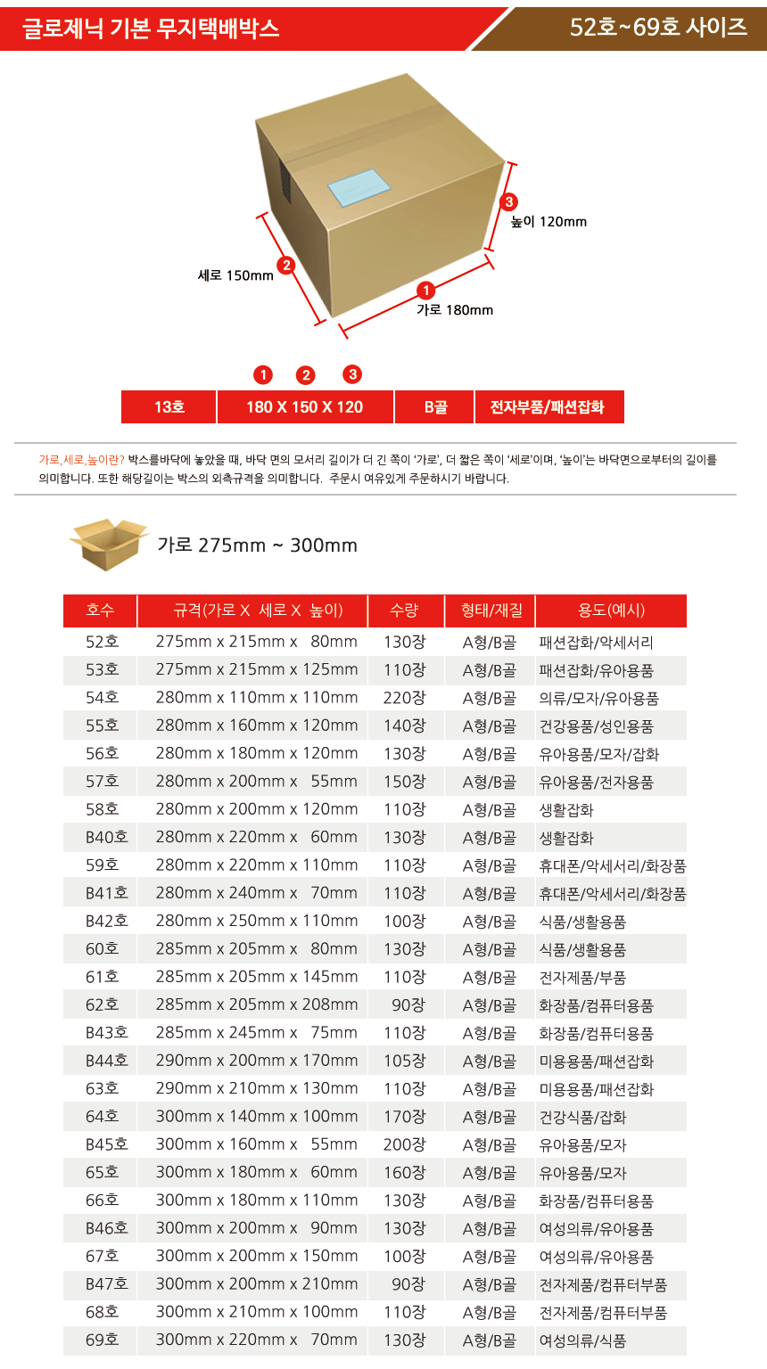 무지택배박스 종이박스 기본 택배박스 52호~69호